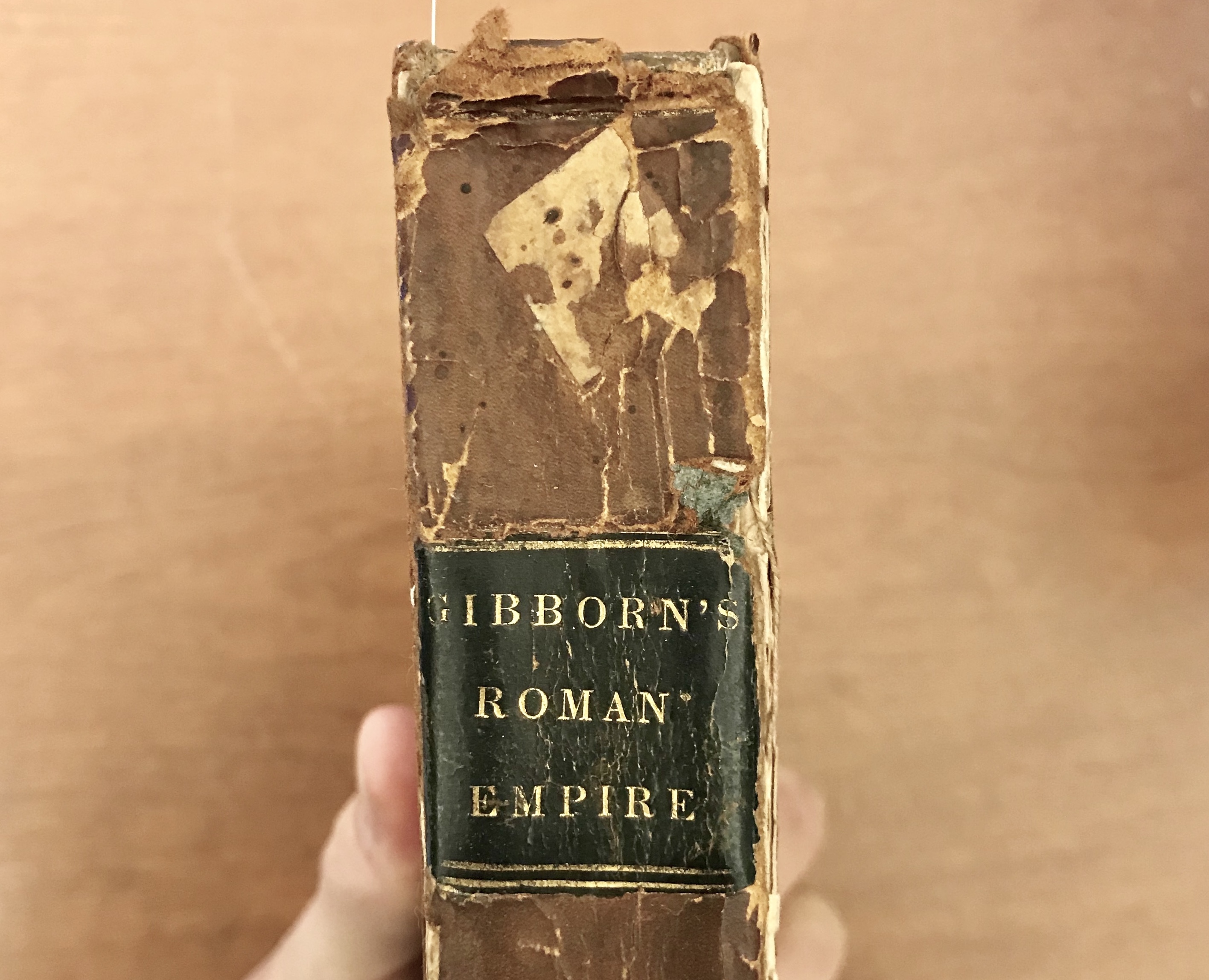 When the first shipment of books arrived [Thomas Jefferson] visited the library, where Mr. Wertenbaker had already placed them on their shelves. After a thorough inspection, he called Mr. W. to him, and, pointing to “Gibbon’s Decline and Fall,” said: "You ought not to have received that book. It should have been returned." "Why," said Mr. W., "it is a very handsome edition." "That may be so," said Mr. J., "but look at the back." It was (and is yet) “Gibborn’s Roman Empire.”