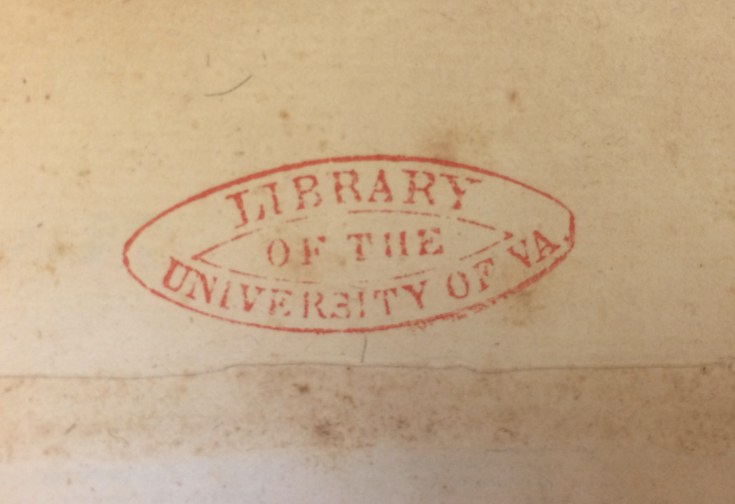 The RLO logo is modelled on the earliest surviving book stamp (pictured below) used to mark volumes shelved in the University of Virginia's Rotunda Library. RLO is currently at work taxonimizing book stamps that survive in an effort to date them within approximate ranges. This will aid in determining when individual volumes were acquired by the University.